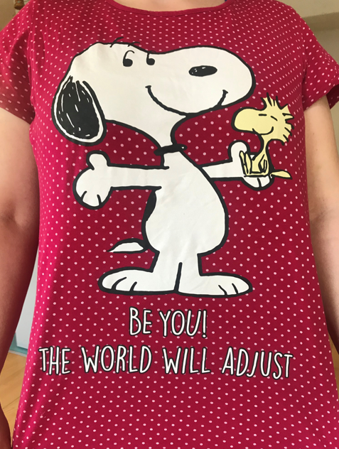 Ob nam neprimernem času. Zjutraj (pa ne zelo zgodaj) sem imela telefonski pogovor s poslovnim partnerjem, s katerim sva se dogovarjala za popoldansko on line izobraževanje. Pa nepričakovano reče, da lahko stestirava prenos slike, da bo vse brezhibno delovalo. Jaz pa še v spalni srajci (naj namignem, da obožujem Snoopyja ;-). Sem v hipu imela drugo nujno delo …