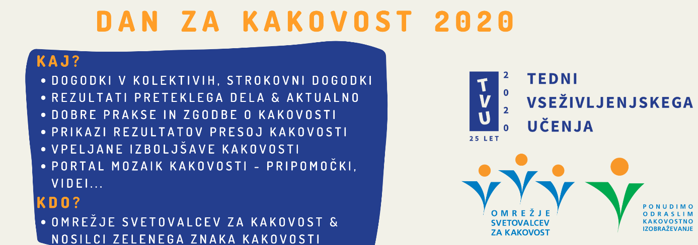Tudi v letu 2020 je med skupne akcije TVU vključen dan, posvečen delu organizacij in posameznikov, povezanem s presojanjem in razvijanjem kakovosti izobraževanja odraslih.