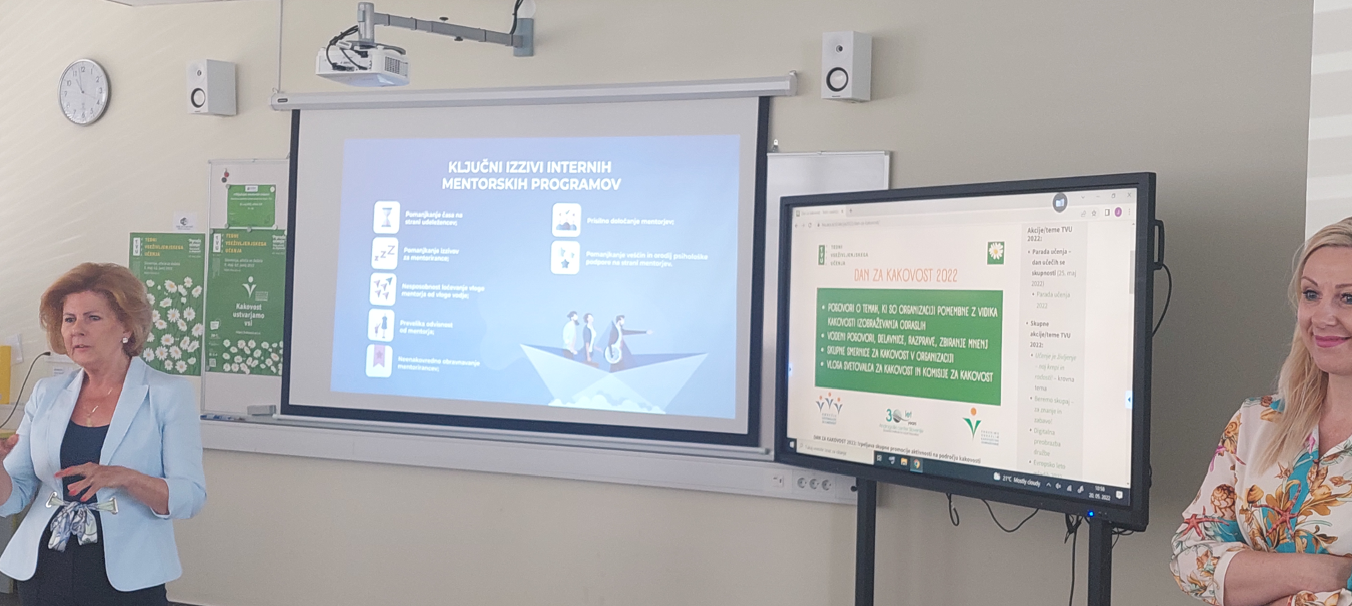 V letu 2022 v naši organizaciji zaključujemo triletni cikel poglobljene samoevalvacije. Akcijski načrt izboljšav vsebuje tudi nadgradnjo mentorskega sistema, ki bo zajemalo tudi mentorstvo študentom, udeležencem različnih programov aktivne politike zaposlovanja (socialna aktivacija, zaposlitvena rehabilitacija), zunanjim sodelavcem in prostovoljcem, saj kot podpisniki Listine raznolikosti Slovenije sprejemamo in spoštujemo načela in vrednote vključujočega delovnega in učnega okolja.