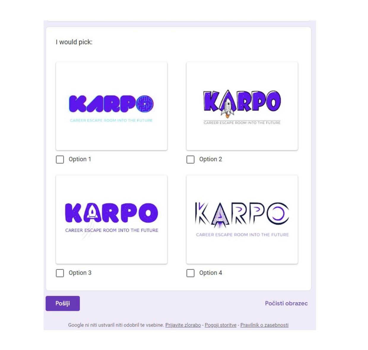 Izdelali smo štiri predloge za logotip projekta KARPO. Izbrali oziroma izglasovali so ga uporabniki družabnih omrežij. Hvala vsem za sodelovanje.