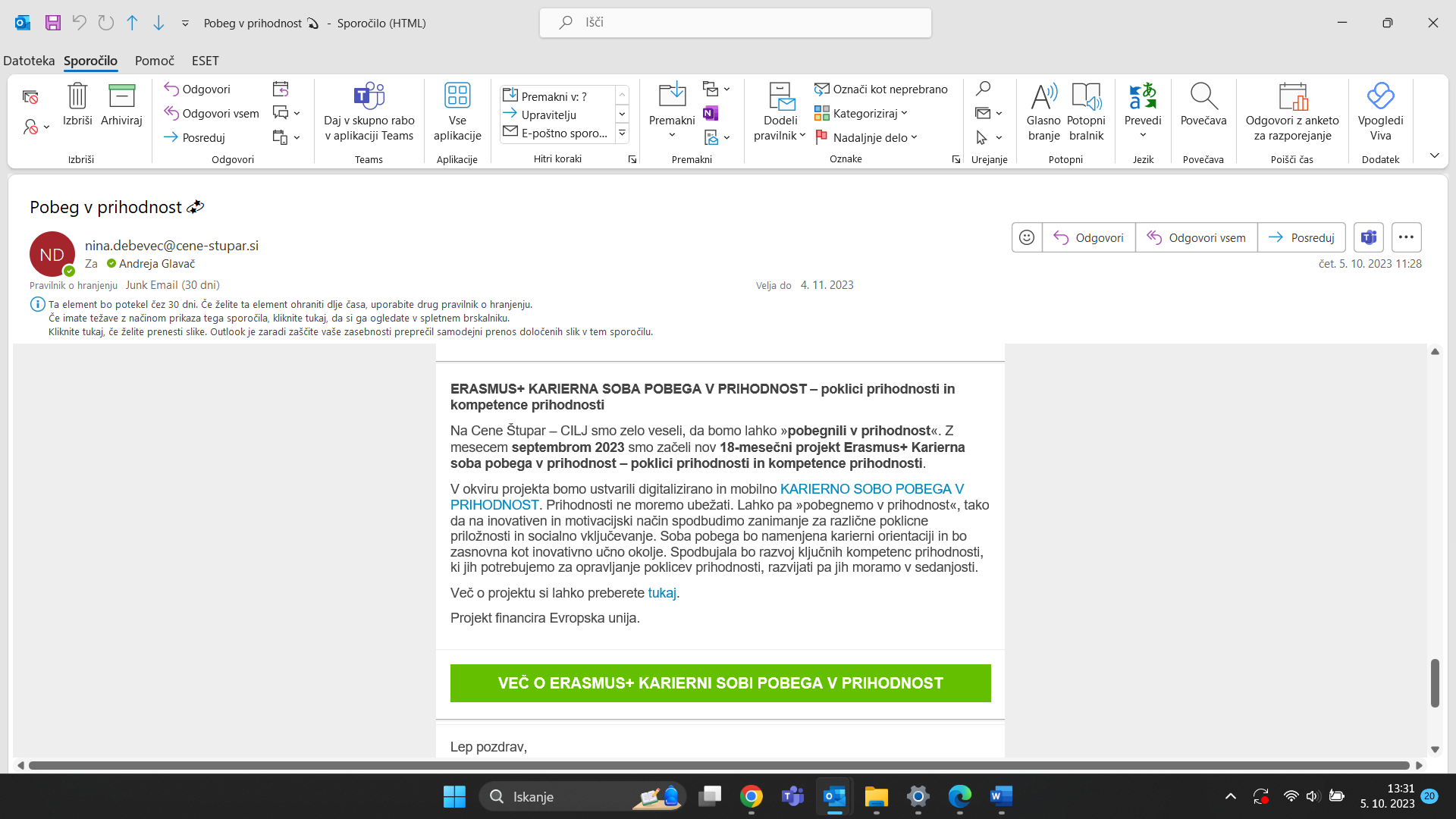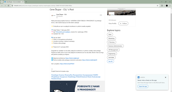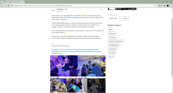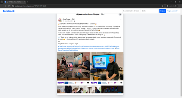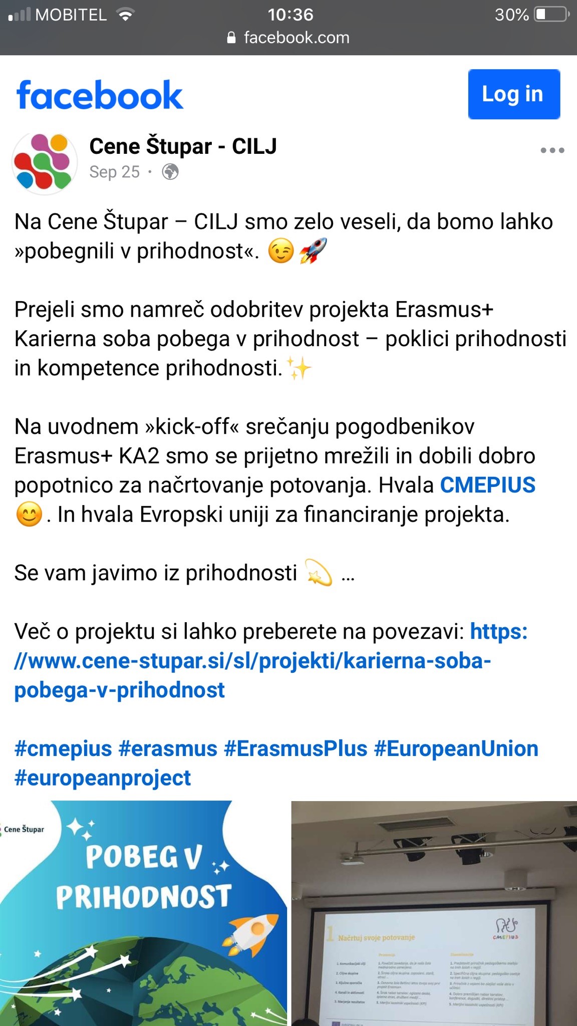 ERASMUS+ KARIERNA SOBA POBEGA V PRIHODNOST