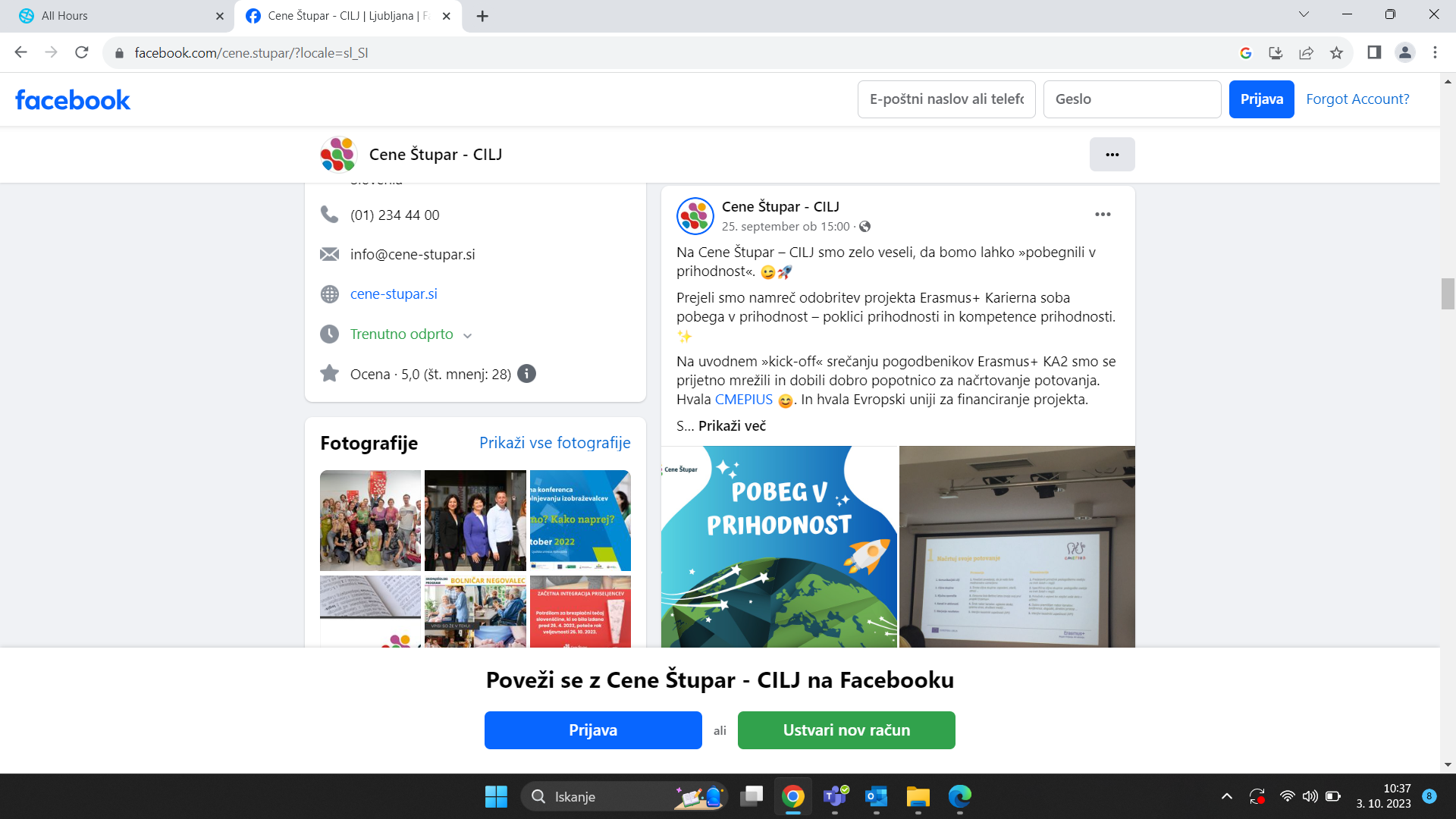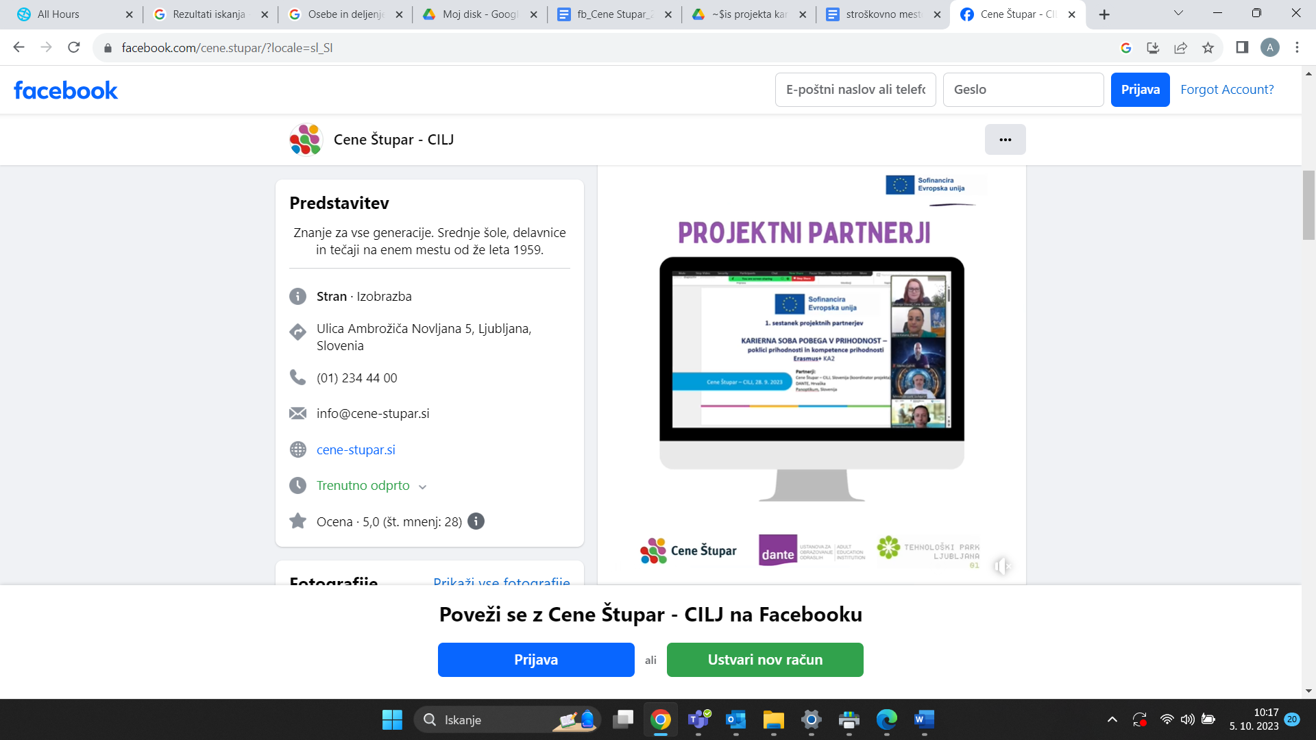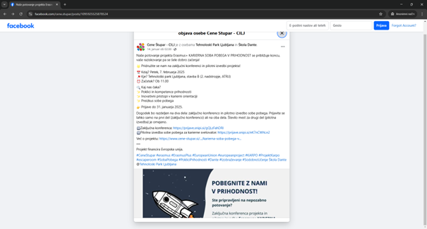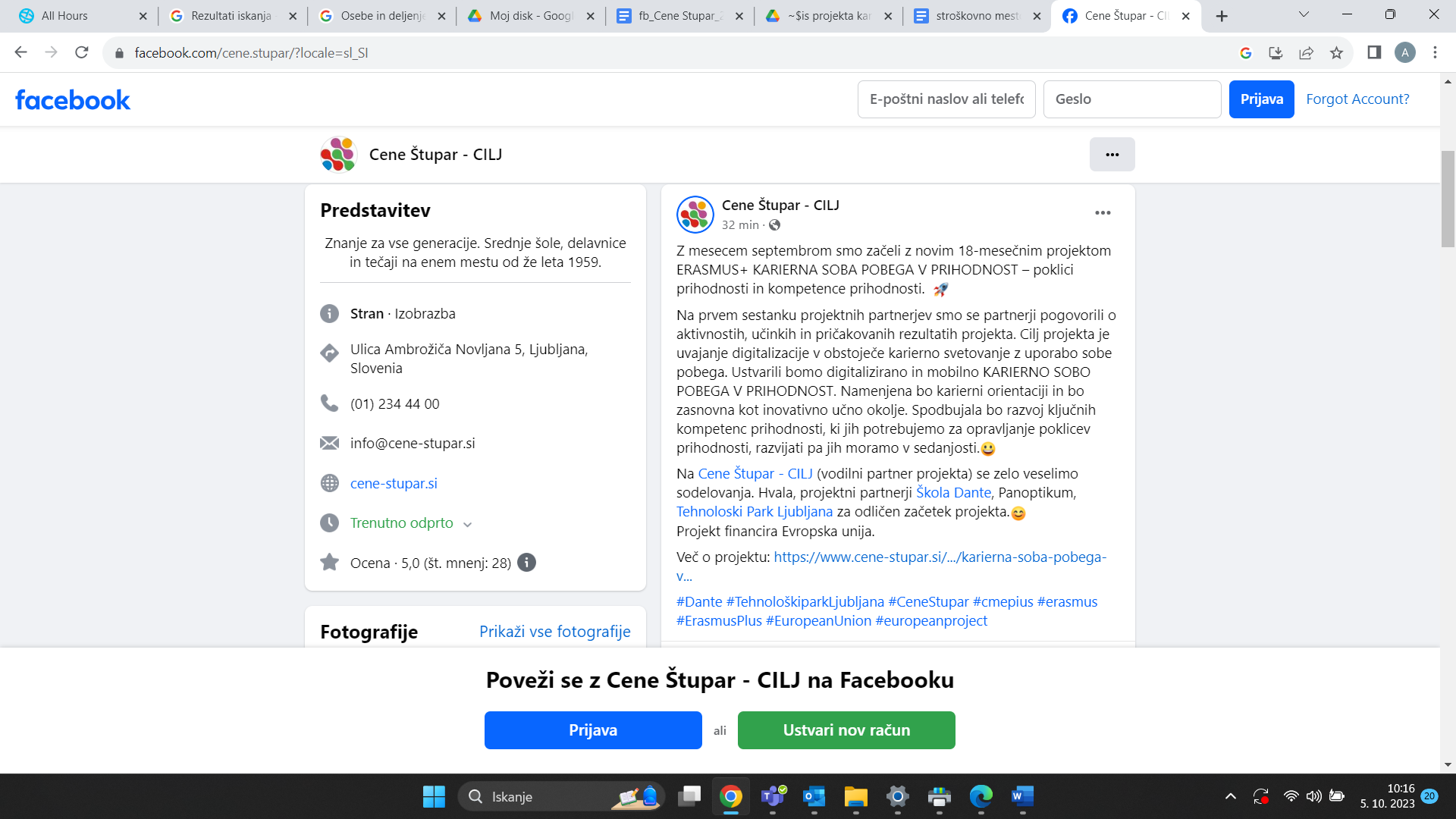 Facebook, Instagram, Linkedin, Cene Štupar – CILJ