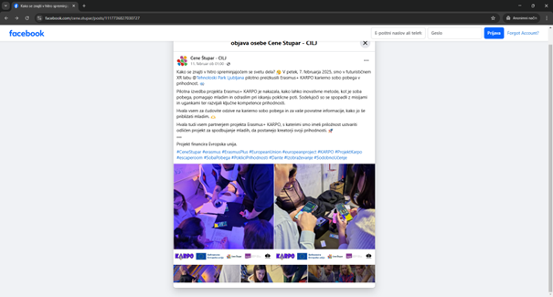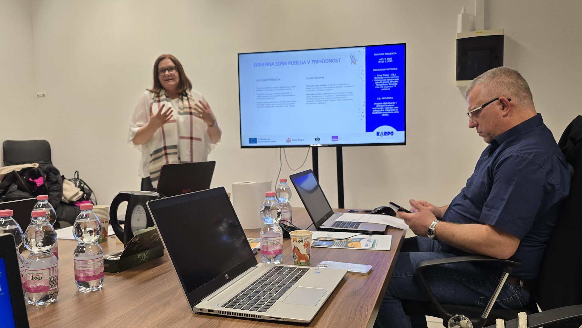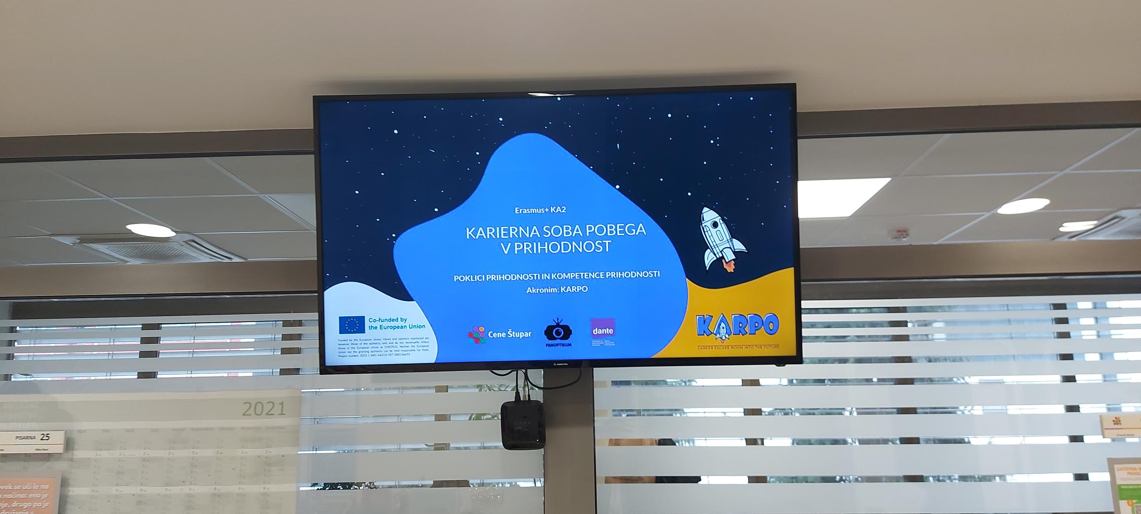 V okviru projekta ERASMUS+ KARPO smo se karierni svetovalci iz Cene Štupar-CILJ in DANTE usposobili za izvedbo sobe pobega v prihodnost.