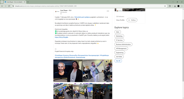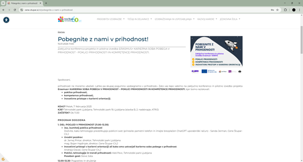 zaključna konferenca projekta in pilotna izvedba Erasmus+ KARIERNA SOBA POBEGA V PRIHODNOST – POKLICI PRIHODNOSTI IN