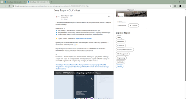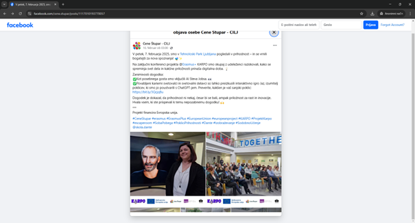 Projekt KARPO predstavljamo tudi obiskovalcem Cene Štupar – CILJ (udeležencem izobraževanj in svetovanj, poslovnim partnerjem, zunanjim sodelavcem …).