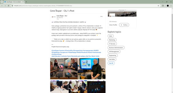 Uspešna prva pilotna izvedba ERASMUS+ KARPO!