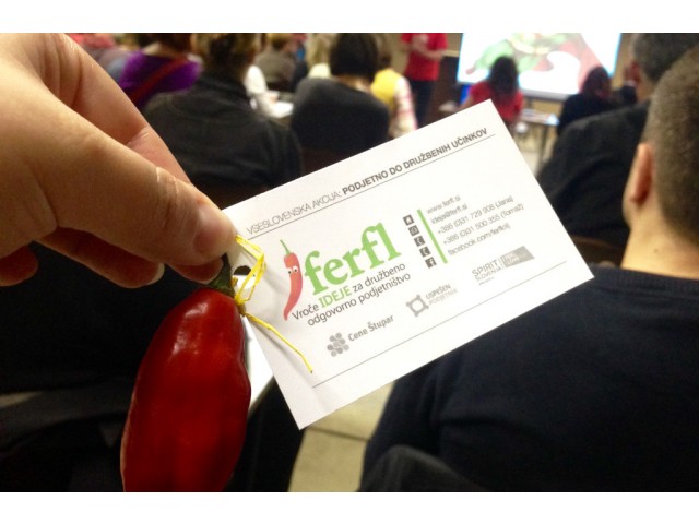 »Ferfl je druga beseda za feferon, ki sam po sebi nosi asociacijo vročega. Od tu izhaja ime našega program Ferfl, kjer iščemo vroče, torej ferfl ideje, ki pa niso zgolj klasične ideje, ampak so ideje z družbenim učinkom.« S temi besedami je Jana Mlačnik, vodja projekta Ferfl na Cene Štupar – CILJ, pozdravila navzoče in jih spodbudila k razmišljanju ter razvijanju svojih idej. Dodatno je udeležence nagovoril tudi mag. Bojan Hajdinjak, ki jim je na srce položil Ferfl vizijo: »Želimo da ideje pridejo iz vas samih, da realizirate tisto v kar verjamete in ob tem naredite še nekaj koristnega za družbo. Ferfl vam ponuja priložnost, da se izkažete, pridobite potrebna znanja in oblikujete mrežo, ki vam bo pomagala na poti do uspeha na trgu.«